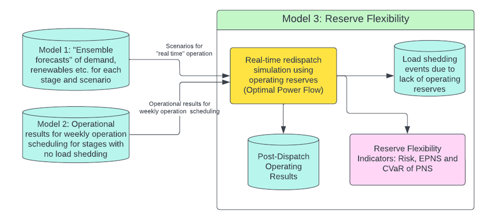 - O terceiro modelo avalia a flexibilidade de reservas, emulando a operação do sistema em tempo real.